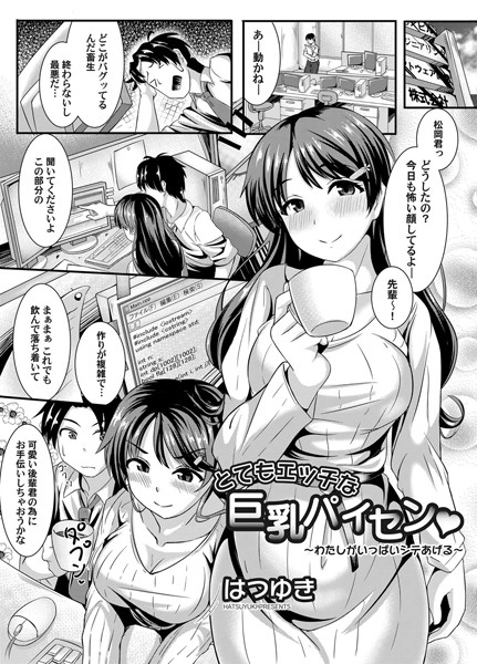 春……柔らかい乳房が揺れ……そっと温かい膣が包む……優しい先輩の笑顔……。いつも仕事が終わらない後輩松岡は、残業の毎日。そんな彼をいつも手伝ってくれるのは、美人で仕事ができて、面倒見がいい先輩の椎名。ある日、松岡は仕事に失敗し上司から怒鳴られてしまう。会社の屋上で仕事に向いてないかも、と落ち込んでいると後ろから椎名に抱きつかれる。「仕事が辛いから人生捨てるのはダメ!」と、椎名はどうやら松岡が自殺すると勘違い。それに気付いた松岡は「私に出来ることならなんでもしてあげる」と言う椎名に対して、「パイズリしてほしい」とエッチな要求をする。戸惑いながらも、世話好きの先輩らしく献身的に松岡のペニスを挟み、射精させる。元気を取り戻した松岡に、椎名は「仕事が耐えられなくなったら、つづきをしてあげる」と言葉を最後に残して…。